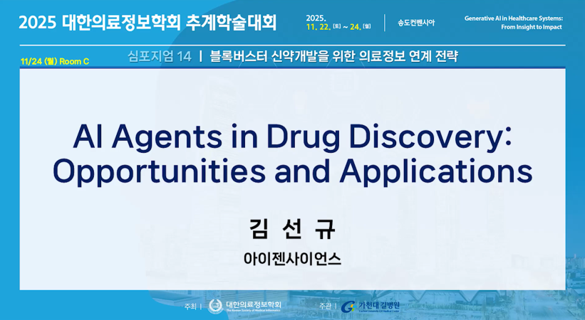 전체 9건 현재페이지 1/1 전체 제목 작성자 내용 검색 K-MELLODDY 세부3과제 추진현황(아이젠사이언스) (2025.12.5. K-MELLODDY 성과보고회) 관리자 2025-12-17 조회 : 101 K-MELLODDY 세부3과제 추진현황 ([구]광주과학기술원 / [현]연세대학교) (2025.12.5. K-MELLODDY 성과보고회) 관리자 2025-12-17 조회 : 72 K-MELLODDY 세부2과제 추진현황(한미약품) (2025.12.5 K-MELLODDY 성과보고회) 관리자 2025-12-17 조회 : 63 K-MELLODDY 세부2과제 추진현황(한국파스퇴르연구소) (2025.12.5. K-MELLODDY 성과보고회) 관리자 2025-12-17 조회 : 51 K-MELLODDY 세부1과제 추진현황(에비드넷) (2025.12.5. K-MELLODDY 성과보고회) 관리자 2025-12-17 조회 : 57 K-MELLODDY 사업단 추진현황 (2025.12.5. K-MELLODDY 성과보고회) 관리자 2025-12-17 조회 : 61 2025년 대한의료정보학회 추계학술대회 심포지엄 발표(에비드넷 이완희) (2025.11.24. 대한의료정보학회 추계학술대회 심포지엄 발표) [영상 바로보기 ] https://youtu.be/YxGeYqX5-S0?si=AjEHOLzA7MGuZ-yb 관리자 2025-12-08 조회 : 59 첨부파일 있음 2025년 대한의료정보학회 추계학술대회 심포지엄 발표(아이젠사이언스 김선규) (2025.11.24. 대한의료정보학회 추계학술대회 심포지엄 발표) [영상 바로보기] https://youtu.be/sFkXjTkHbyQ?si=EynG96gJmEI_X8Gv 관리자 2025-12-08 조회 : 46 첨부파일 있음 2025년 대한의료정보학회 추계학술대회 심포지엄 발표(K-MELLODDY사업단장 김화종) (2025.11.24. 대한의료정보학회 추계학술대회 심포지엄 발표) [영상 바로보기 ] https://youtu.be/gCWqiIgVTyg?si=jMIc-djdib_30B3o 관리자 2025-12-08 조회 : 63 첨부파일 있음 처음으로 이전페이지 1 1 / 1 >다음페이지 마지막으로