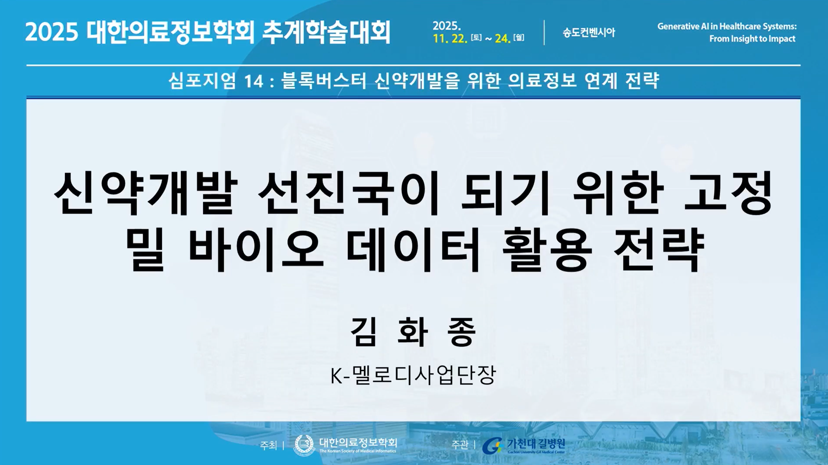 2025년 대한의료정보학회 추계학술대회 심포지엄 발표(K-MELLODDY사업단장 김화종) 관리자 2025-12-08 조회 : 66 (2025.11.24. 대한의료정보학회 추계학술대회 심포지엄 발표) [영상 바로보기 ] https://youtu.be/gCWqiIgVTyg?si=jMIc-djdib_30B3o 첨부파일 2025년 대한의료정보학회 추계학술대회 심포지엄 발표(K-MELLODDY사업단장 김화종).png 1.9 MB 목록