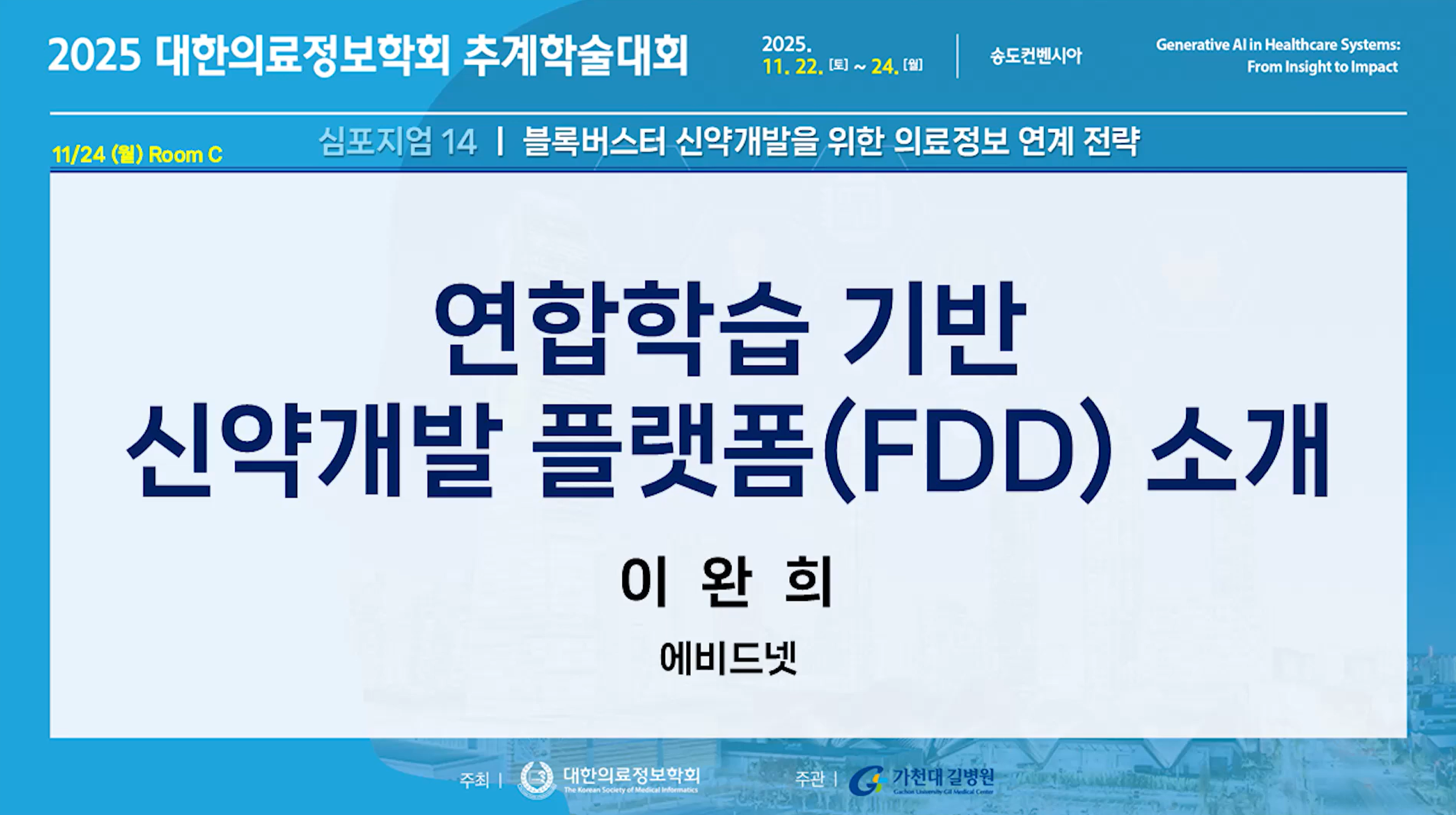 2025년 대한의료정보학회 추계학술대회 심포지엄 발표(에비드넷 이완희) 관리자 2025-12-08 조회 : 64 (2025.11.24. 대한의료정보학회 추계학술대회 심포지엄 발표) [영상 바로보기 ] https://youtu.be/YxGeYqX5-S0?si=AjEHOLzA7MGuZ-yb 첨부파일 2025년 대한의료정보학회 추계학술대회 심포지엄 발표(에비드넷 이완희).png 1.7 MB 목록